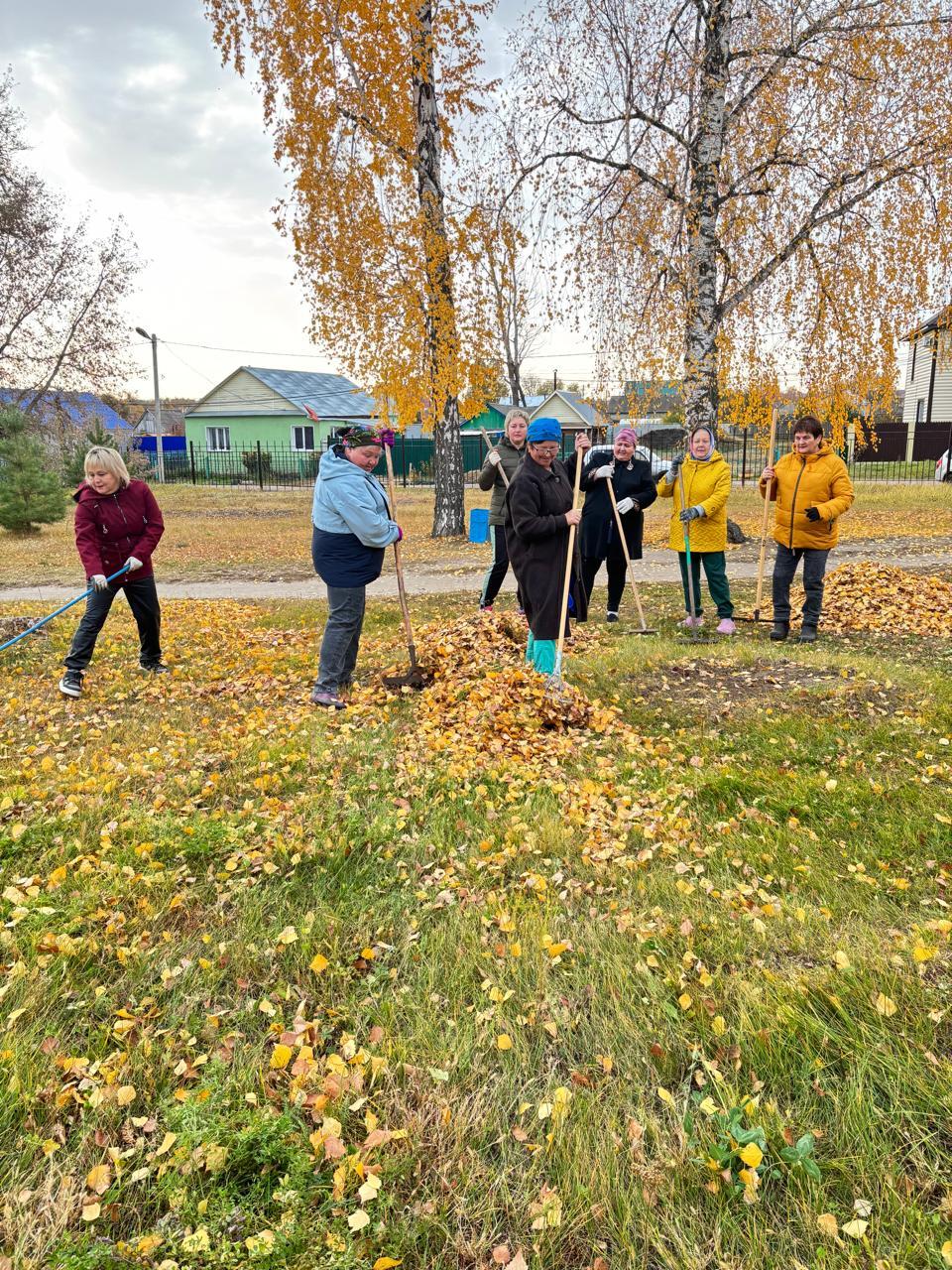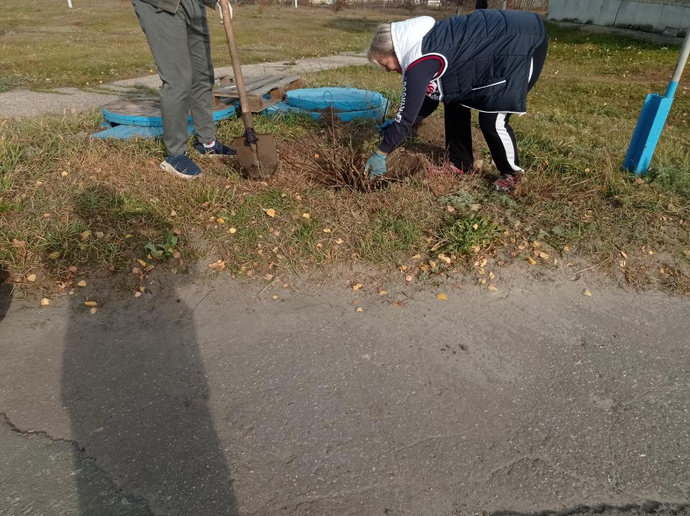 На субботнике дружно собирали мусор, опавшую листву, сажали кустарники, очистили бордюры от наросшей травы, подмели дорожки..